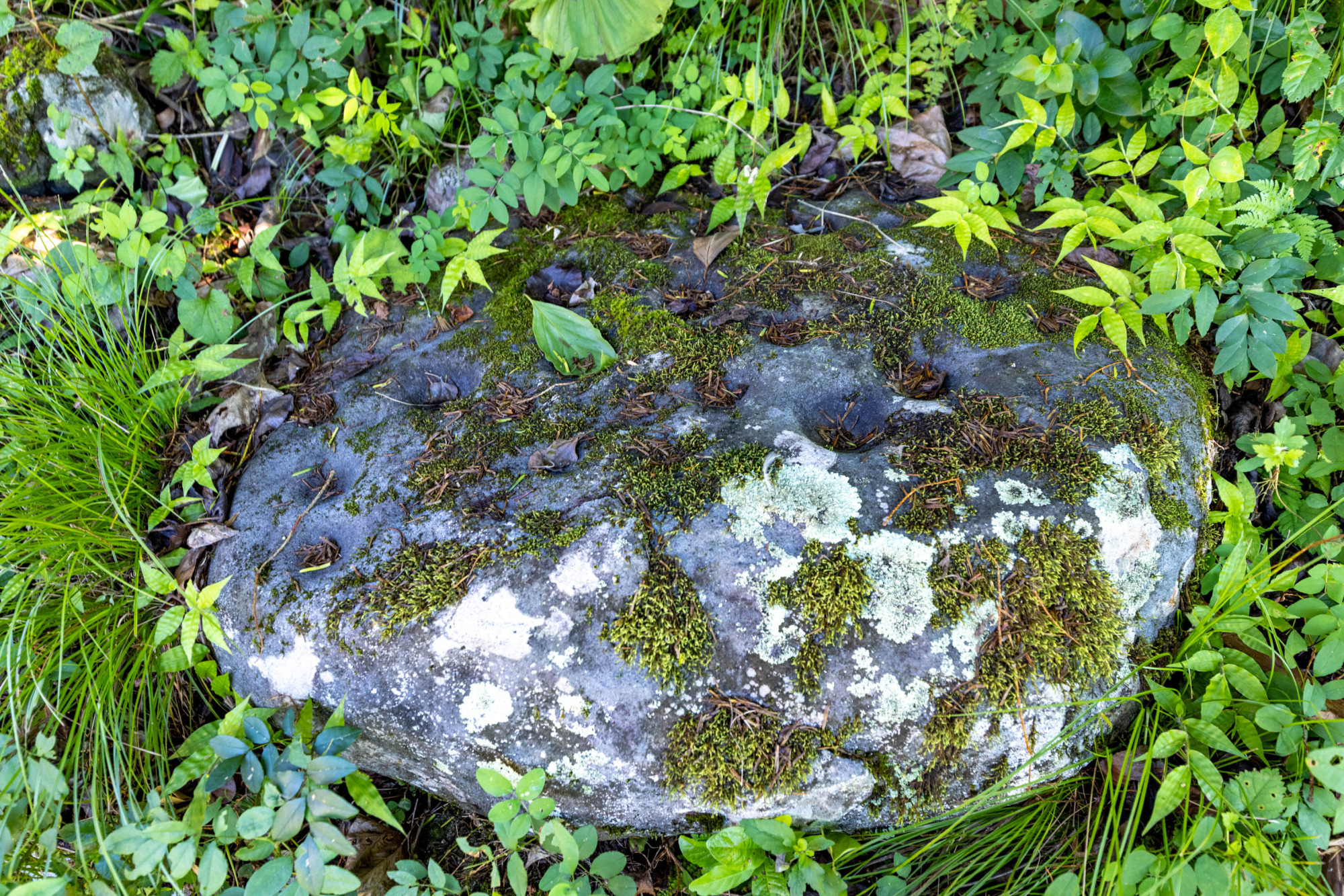 山中に残る石に窪みが残る 両面宿儺の足跡