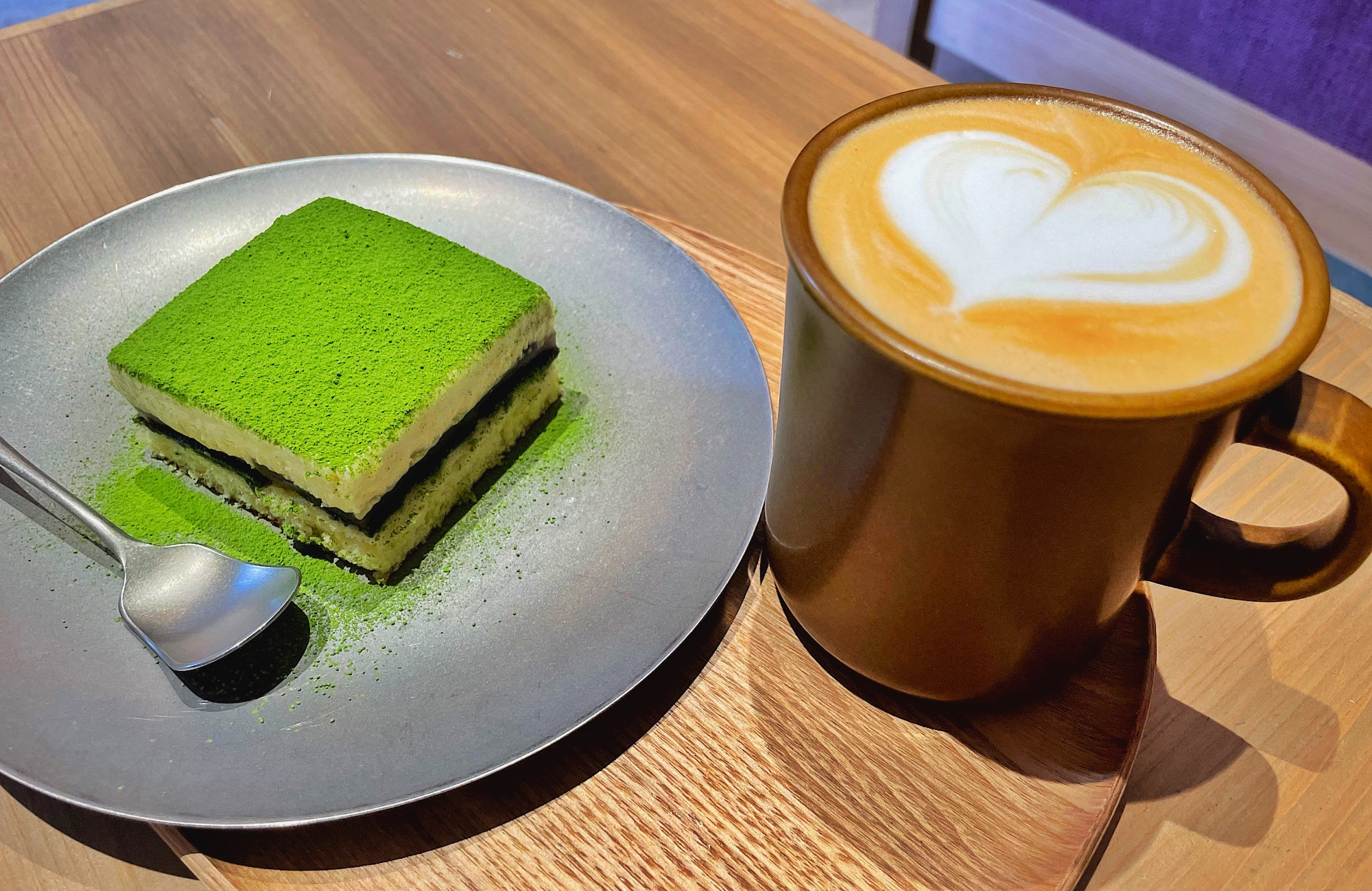 一番上は抹茶パウダーに覆われており、渋みと甘みを同時に味わえるのが嬉しいスイーツです。コーヒーやカフェラテと一緒にいただくのがオススメ。