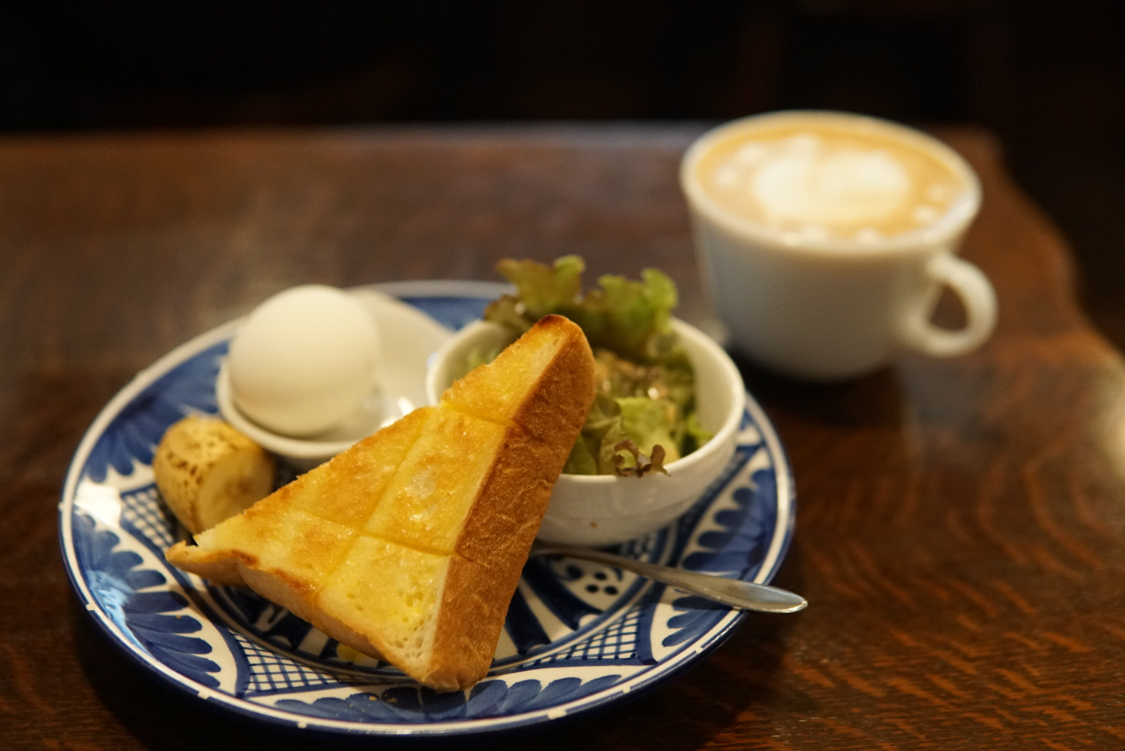 モーニングサービスは、ドリンク代のみでいただけるハーフトーストのプレート(下の写真)のほか、追加料金でチーズトーストやグラノーラも選ぶことができます。