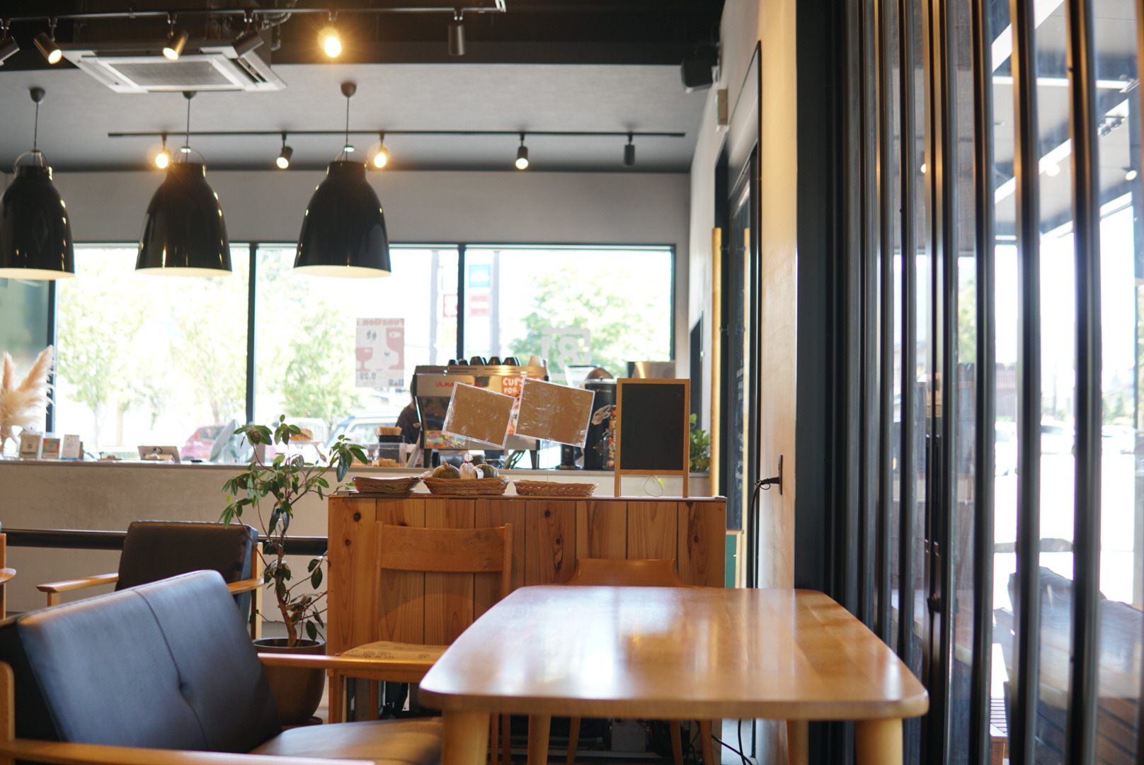 駐車スペースも充実しており、飛騨の家具とお洒落な絵画やクラフトに囲まれる落ち着いた空間で、こだわりのおいしいコーヒーや手作りスイーツを楽しめます。