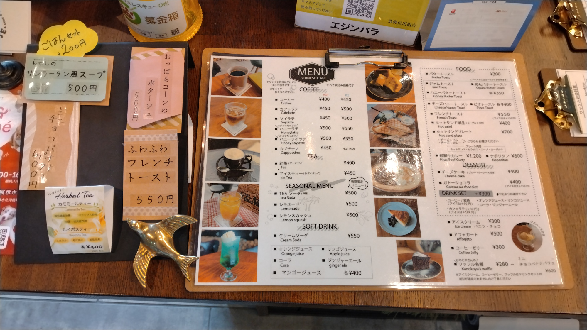 ほかにもスープとご飯のセットや、季節の野菜のスープ、ナポリタンに飛騨牛カレー、フレンチトースト、チーズケーキ…