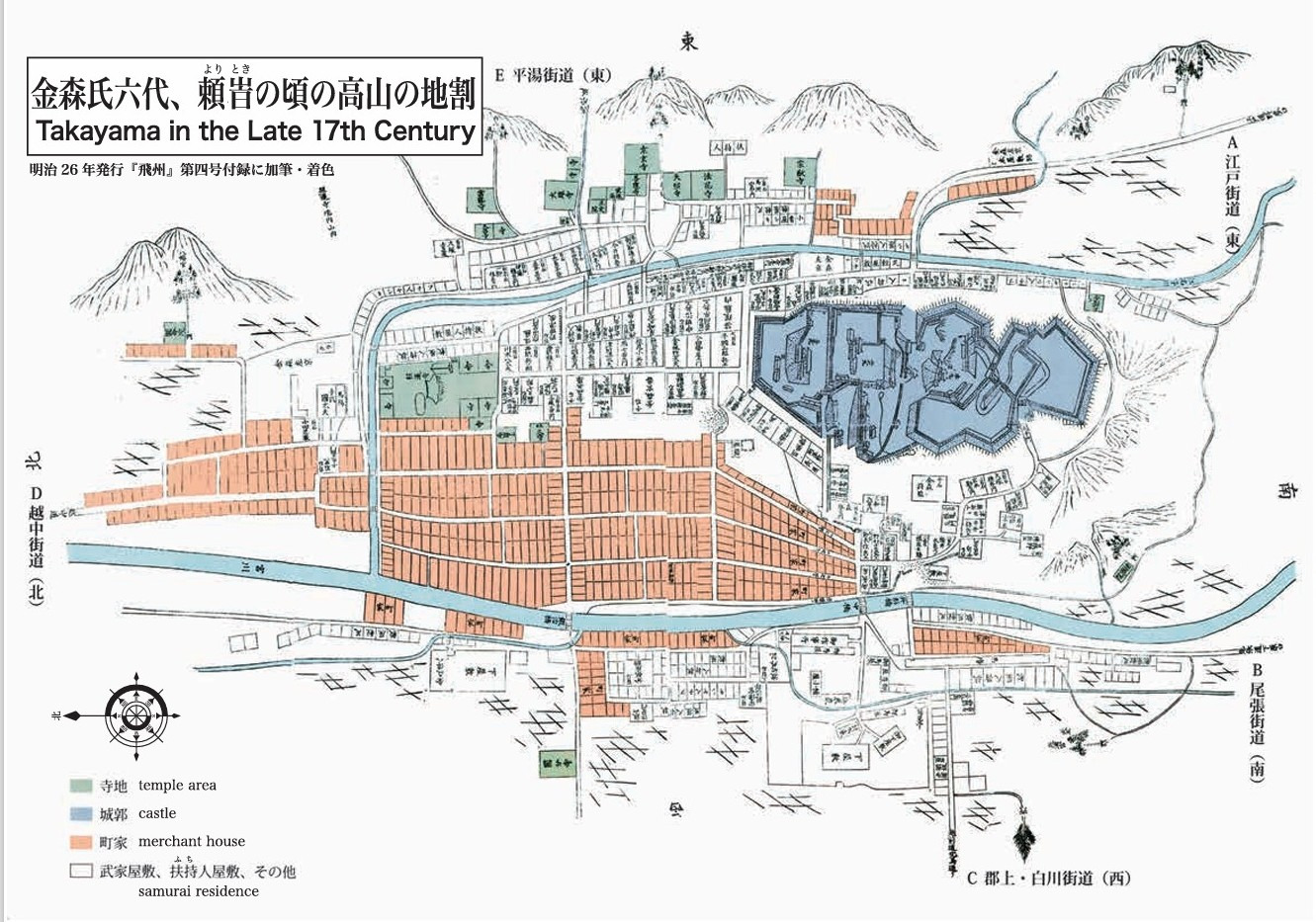 ▲金森家六代・頼旹の頃の高山の地割(「東山遊歩道」パンフレットより)