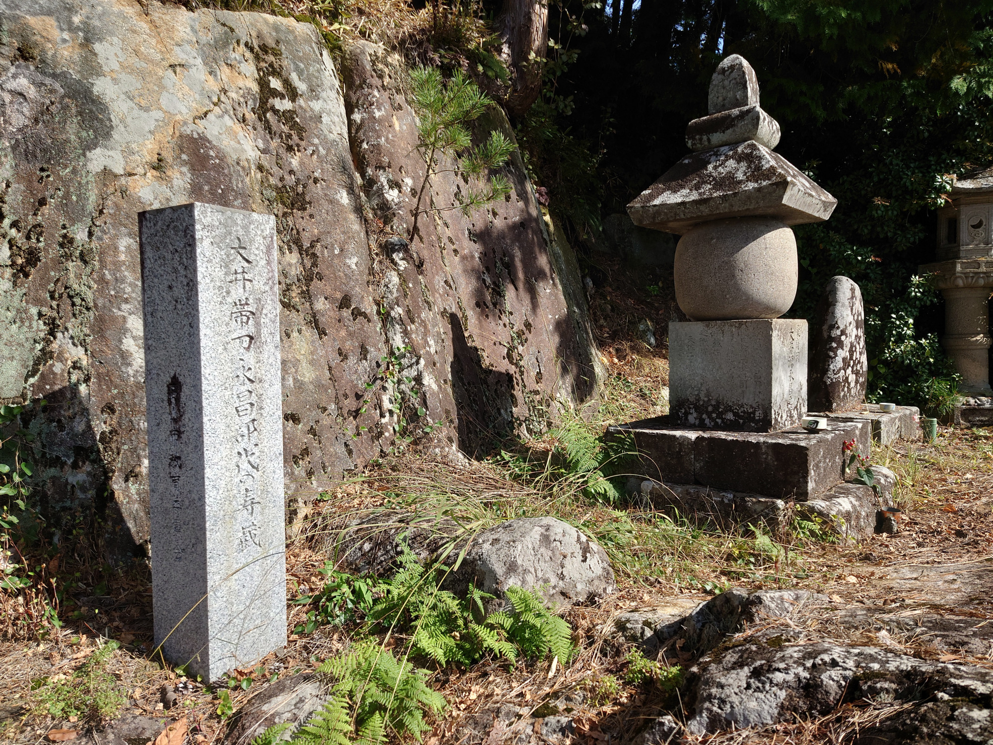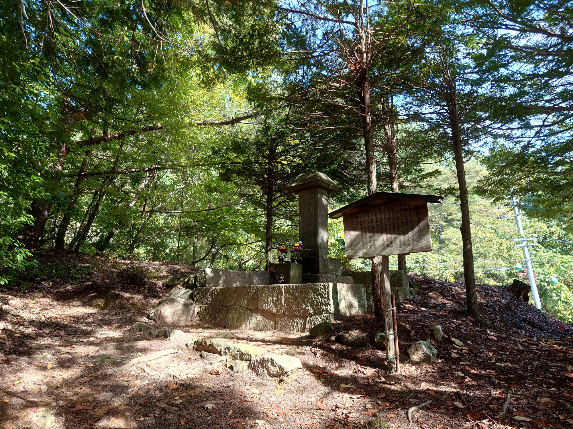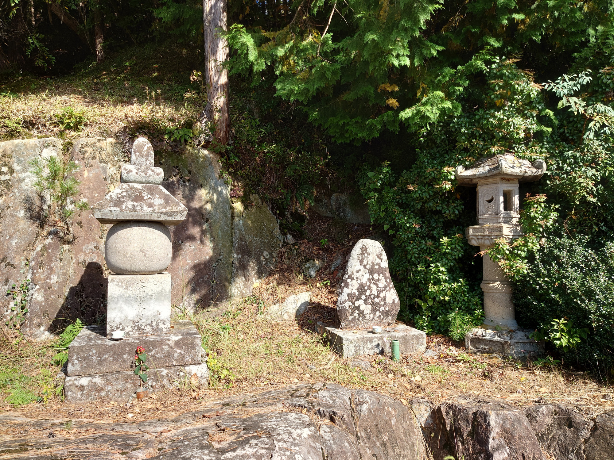 案内通りに山道をのぼっていくと、山の頂にお墓と祠がありました。