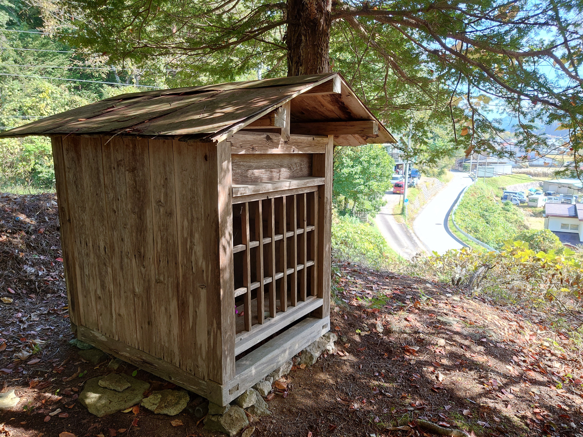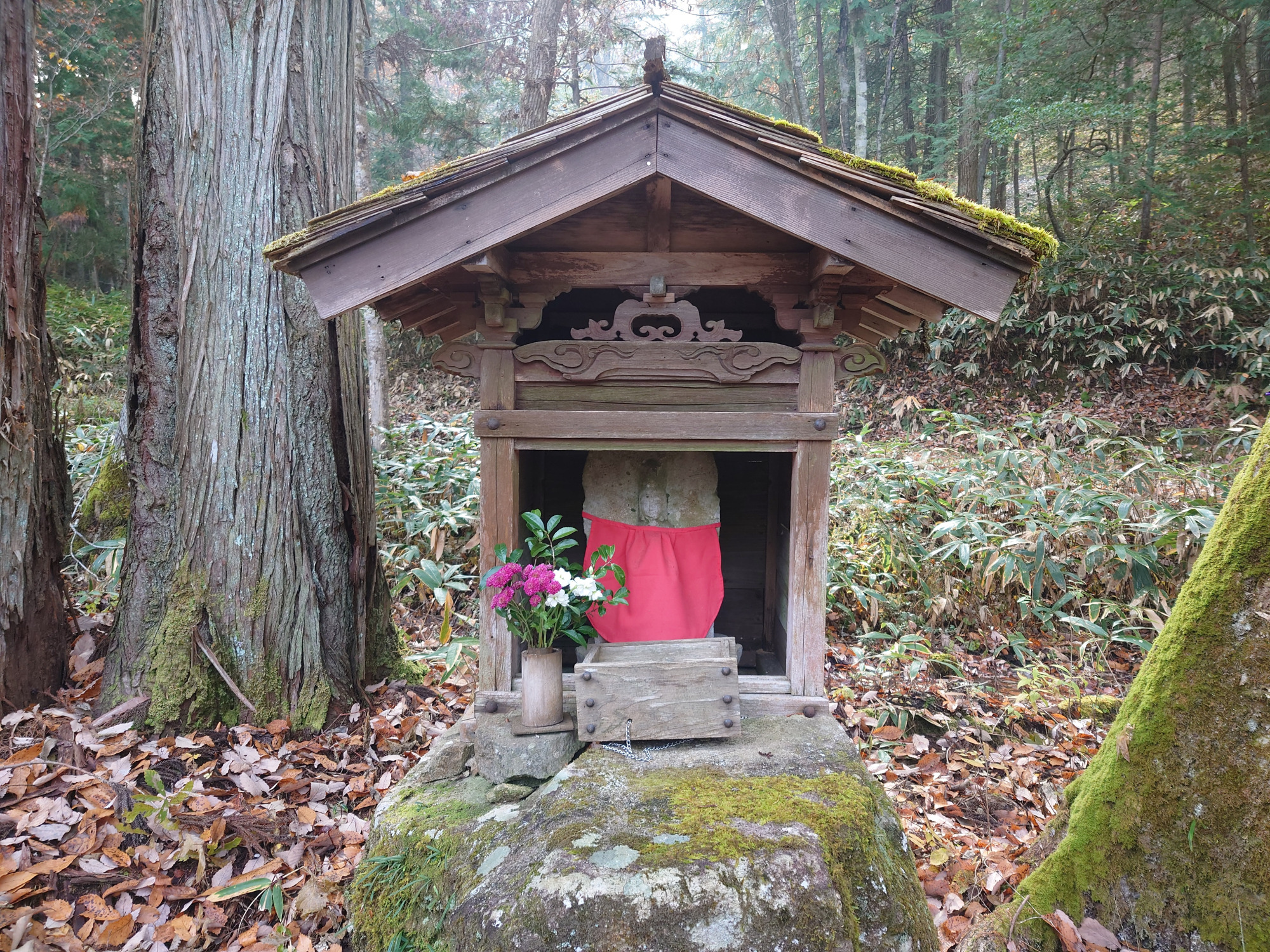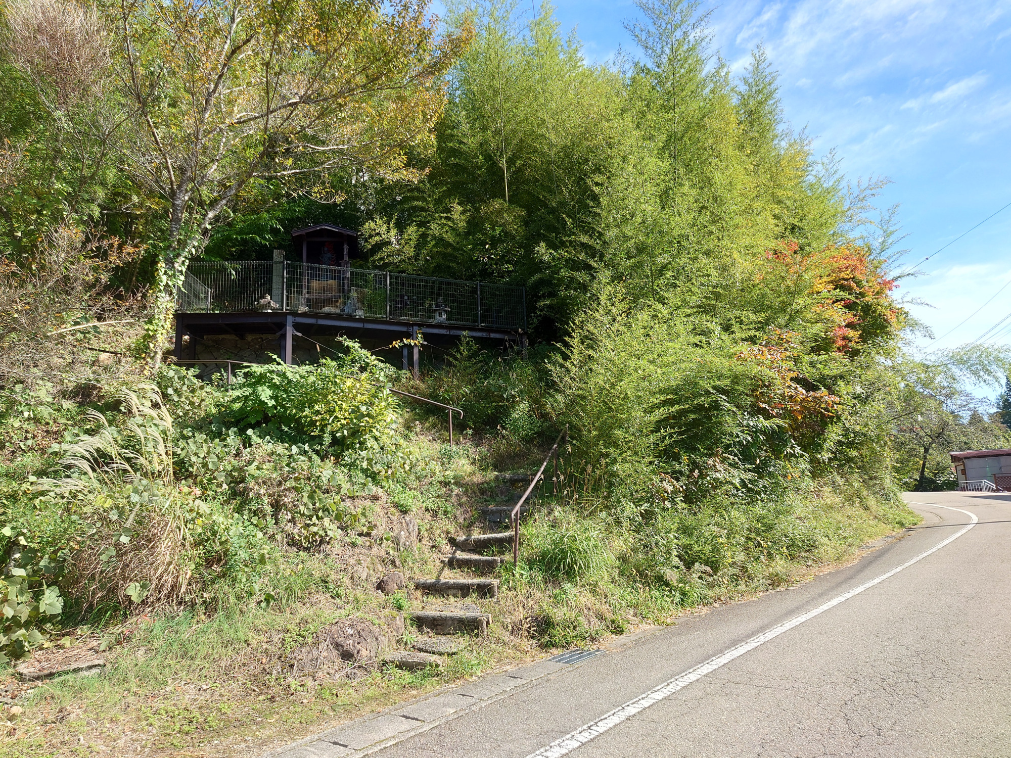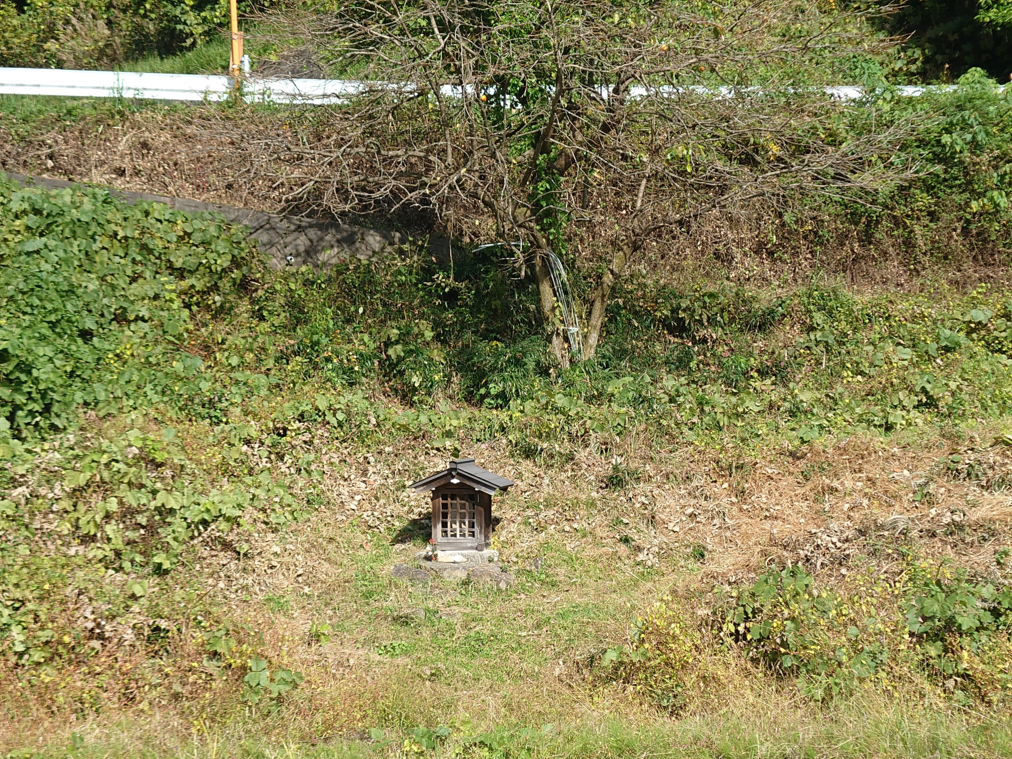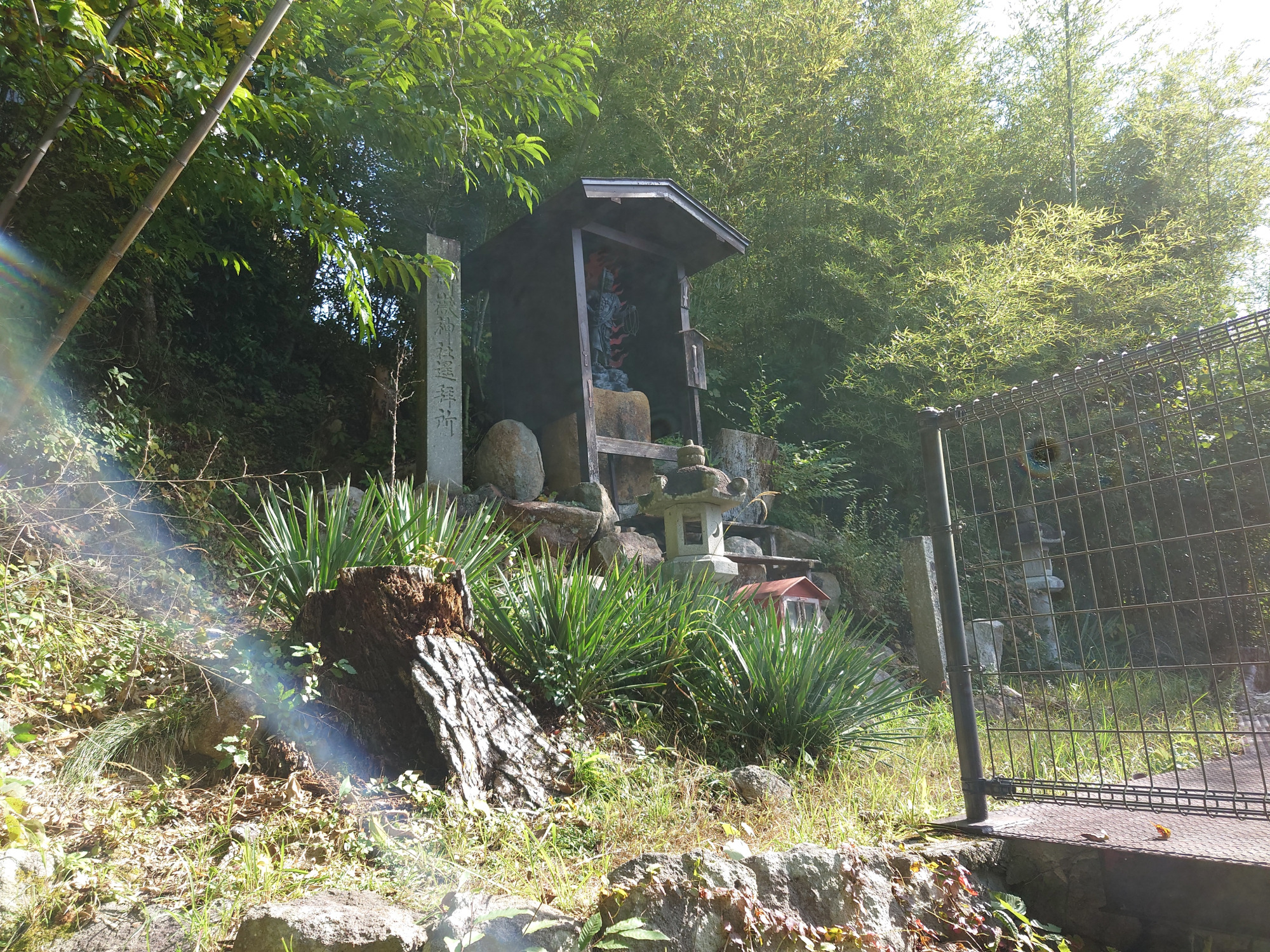 道分燈籠を出発して数分。左手の山の斜面に祠(ほこら)があるのを見つけました。