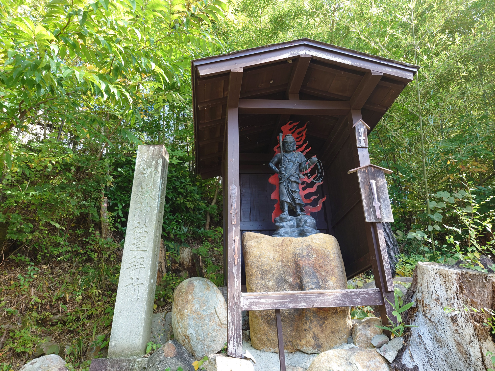 しかし、高根鉱山が休山となり、この先の見通しが立たなくなったため、「飛騨国内であれば何処に安置されてもいい」ということで、当時江名子町に住んでいた人がこの不動尊を委託されたそうです。その縁で、現在の地に安置されました。