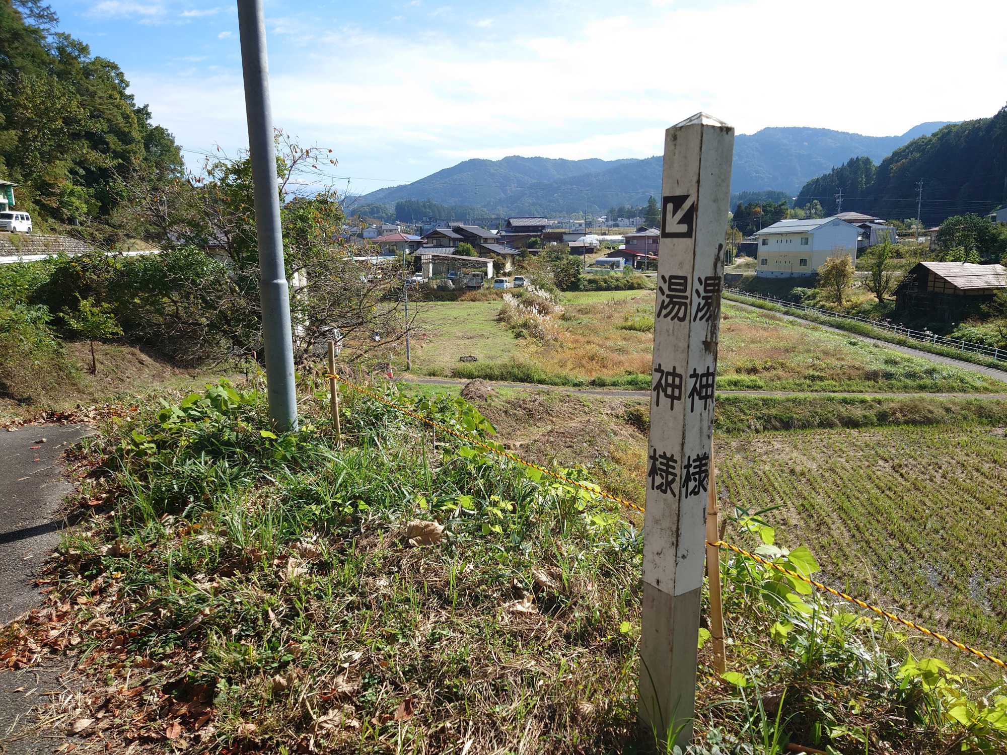 ▲「湯神様って何?」疑問に思い、説明書きがないか、あちこち探してみましたが、標柱の裏に「荏名古(えなこ)史跡保存会」と記してあるだけで、詳細はありませんでした。