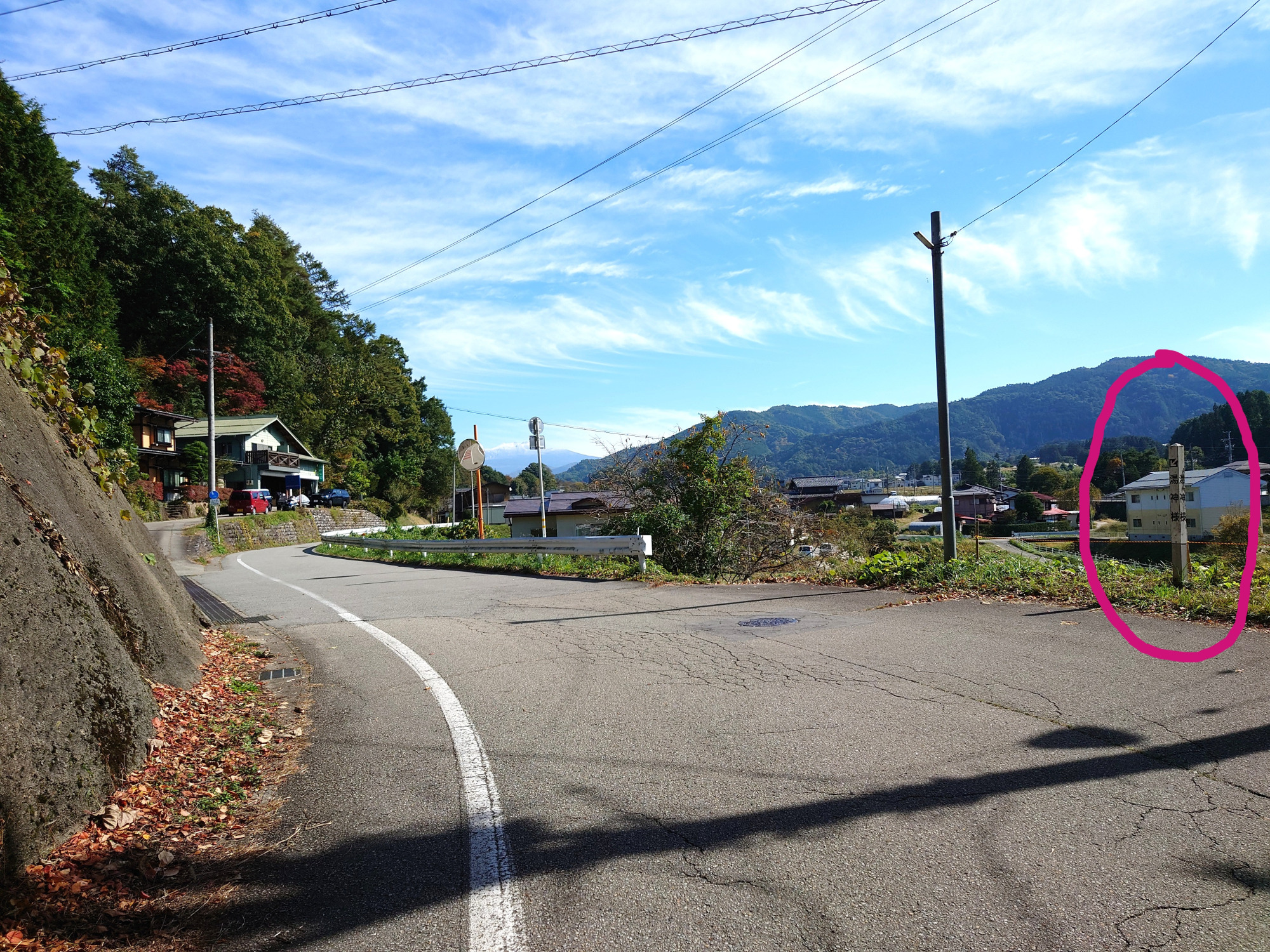 ▲この先、三叉路(県道462号線との合流地点)に突き当たったところで、左に曲がります。