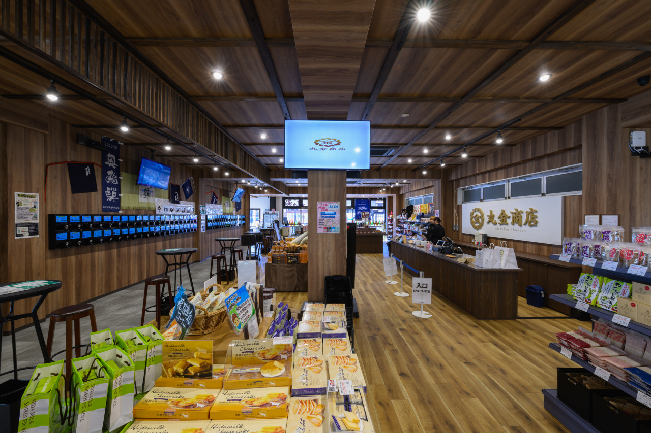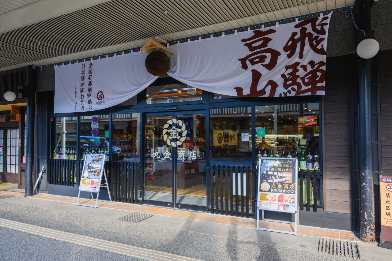 全国47都道府県の日本酒を取り揃え、100種以上の試飲が楽しめる「丸金商店」。飛騨の地酒はもちろん、全国の人気銘柄が試飲できます。立ち飲みできるスペースでは笹かまや、あげを炙りアツアツが味わえるので、ついついお酒がすすみそう♡人気のご当地グルメ飛騨牛まんも食べられます!