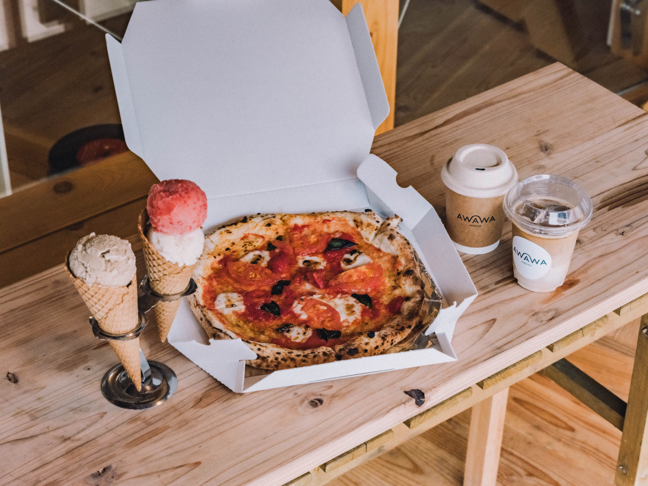 信州と飛騨が出会うこの地で、手づくり生地を500度超の窯で焼き上げたピッツァ、香り豊かなコーヒー、地産のジェラートをご提供します。信州と飛騨の食材をのせた一枚とともに、旅の合間にほっとできる時間を。信飛トレイルのインフォメーションセンターとして、歩く旅を支える役割も担っています。