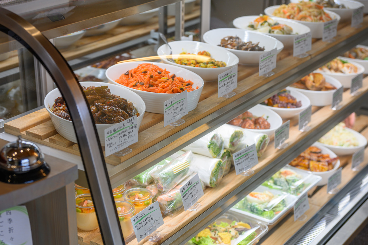 ・旬の味覚を使った彩り豊かな惣菜が並ぶ