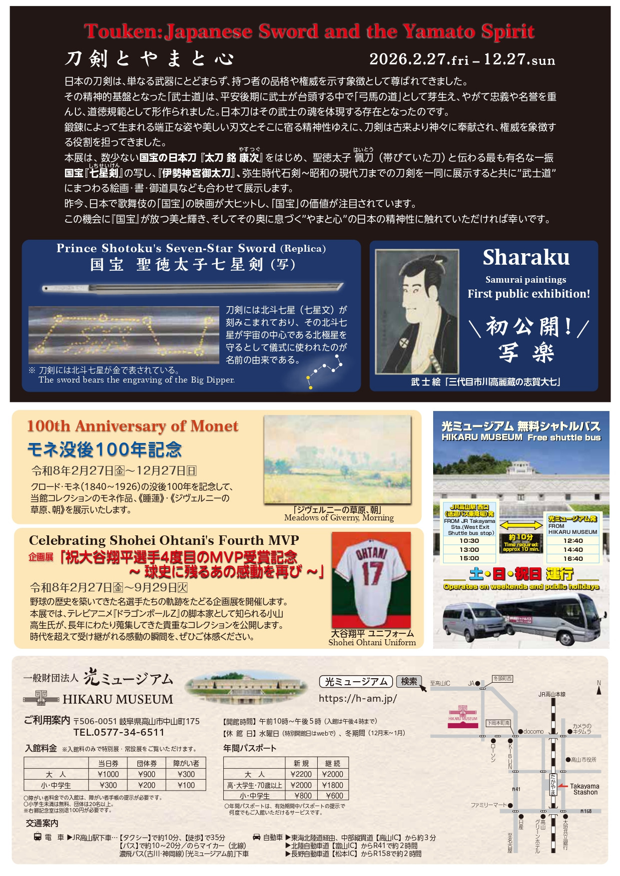 土日祝はJR高山駅より無料シャトルバスが運行されます。ぜひご利用ください。