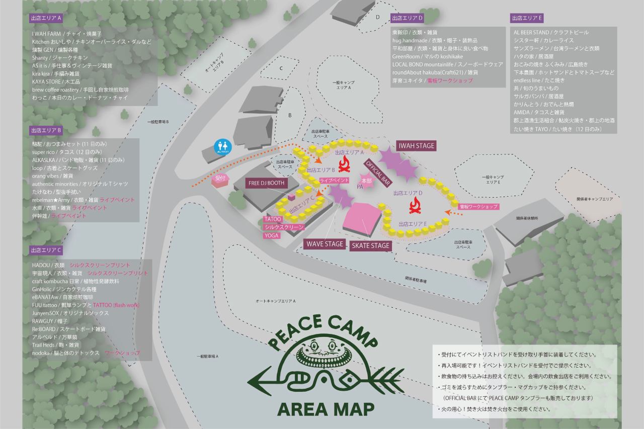I WHA FARM / Kitchen おいしや / 燻製GEN / kira kira / Shanty / AS it is / KAYA STORE / brew coffee roasters / わっこ / 駱駝 / super rico / Loop / authentic minorities / orang vibes / たけなわ /水車 / Rebelman★Army / HADOU / 宇宙現人 / craft kombucha 日常 / GinHolic / eBANATAw / JunyersSOX / FUU tattoo / RE:BOARD / RAWGUY / Trail Heds / アルベルト / 乘鞍印 / hug.handmade / 平和部屋 / GreenRoom / roundabout / LOCAL BOND / たい焼き TAYO / AMIDA / かりんとう / salugabamba / 共 / endlessline / 下本農園 / おこみの焼き ふくみみ / ハタの家 / サンズラーメン / シスター軒 / AL BEERSTAND /Sow Pastries Shop