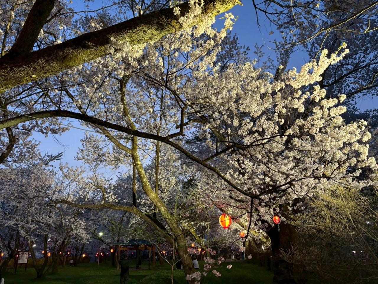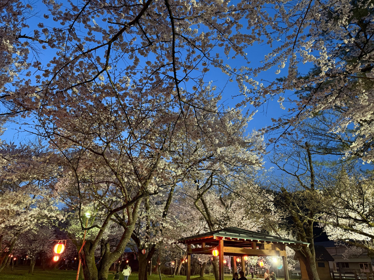飛騨の自然に包まれた桜野公園では、春の見頃にあわせて桜のライトアップが行われます。園内と宮川沿い約600mに広がる約300本の桜が一斉に咲き誇り、夜にはやわらかな光に照らされて、幻想的な風景が広がります。