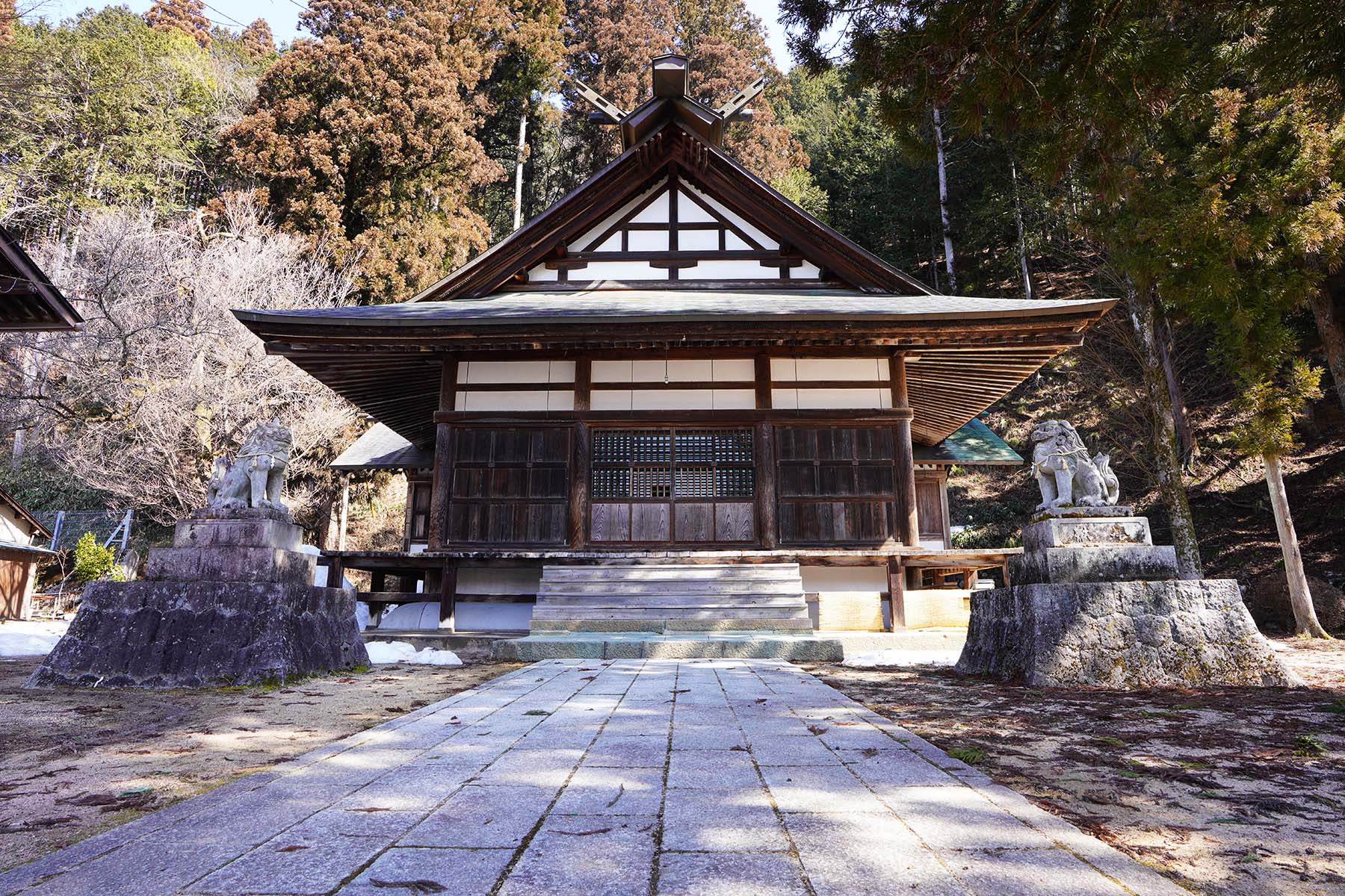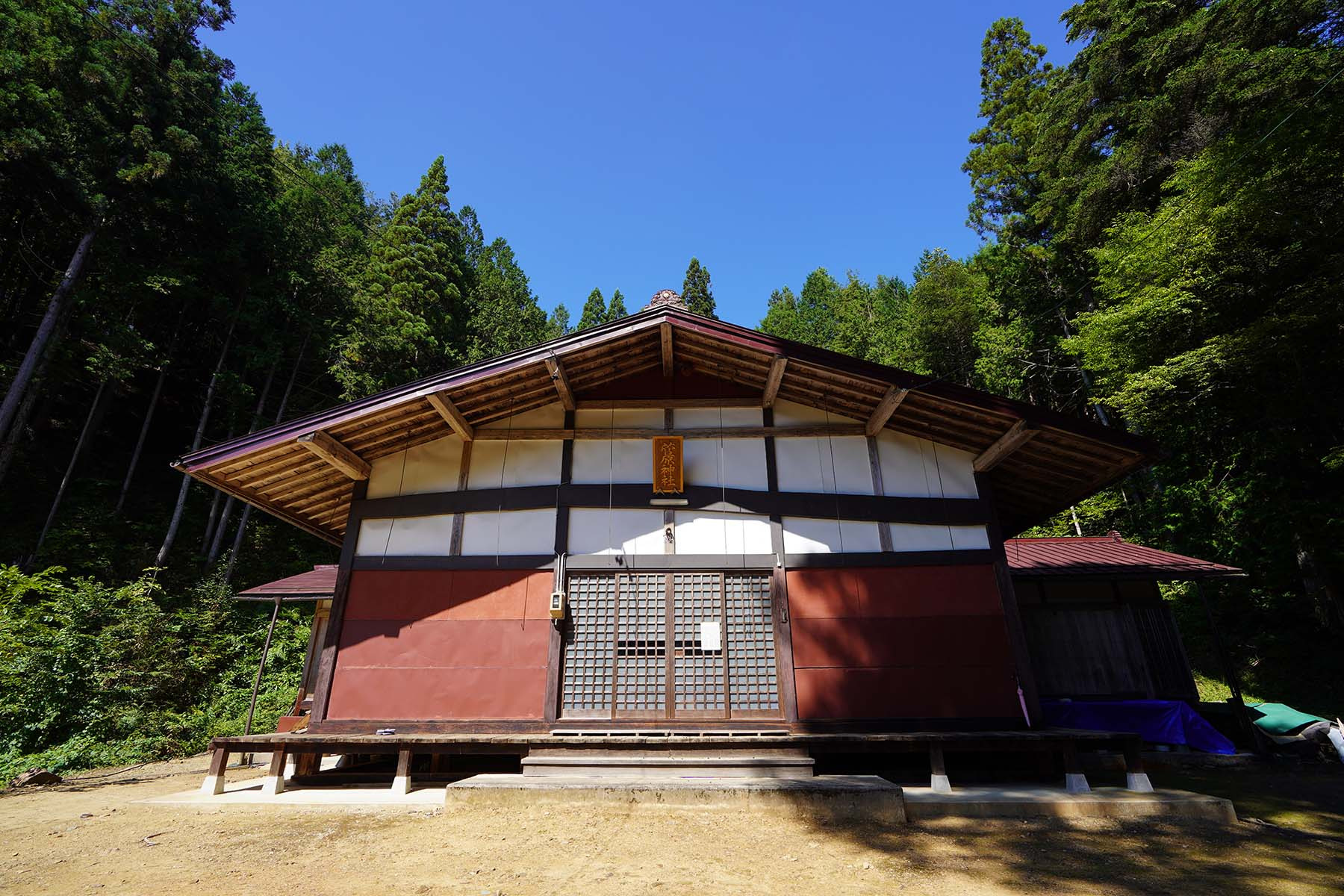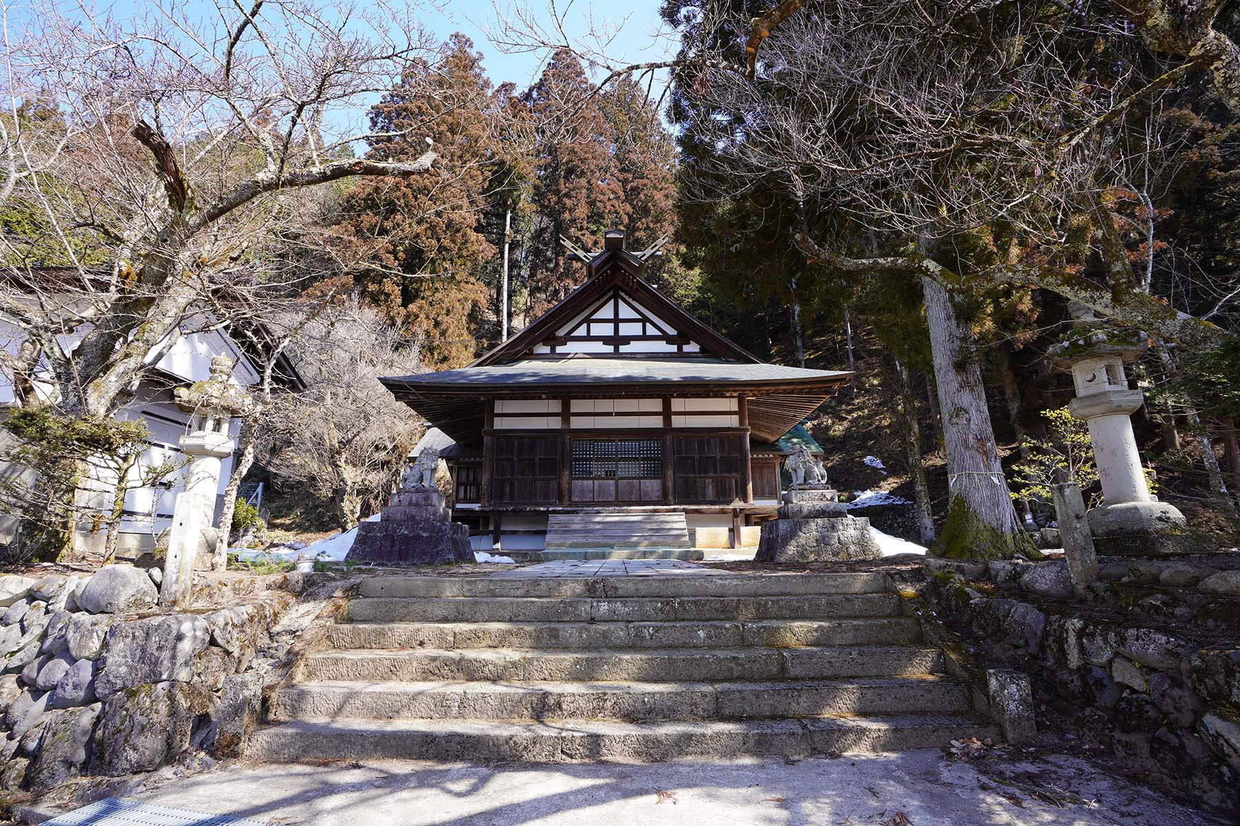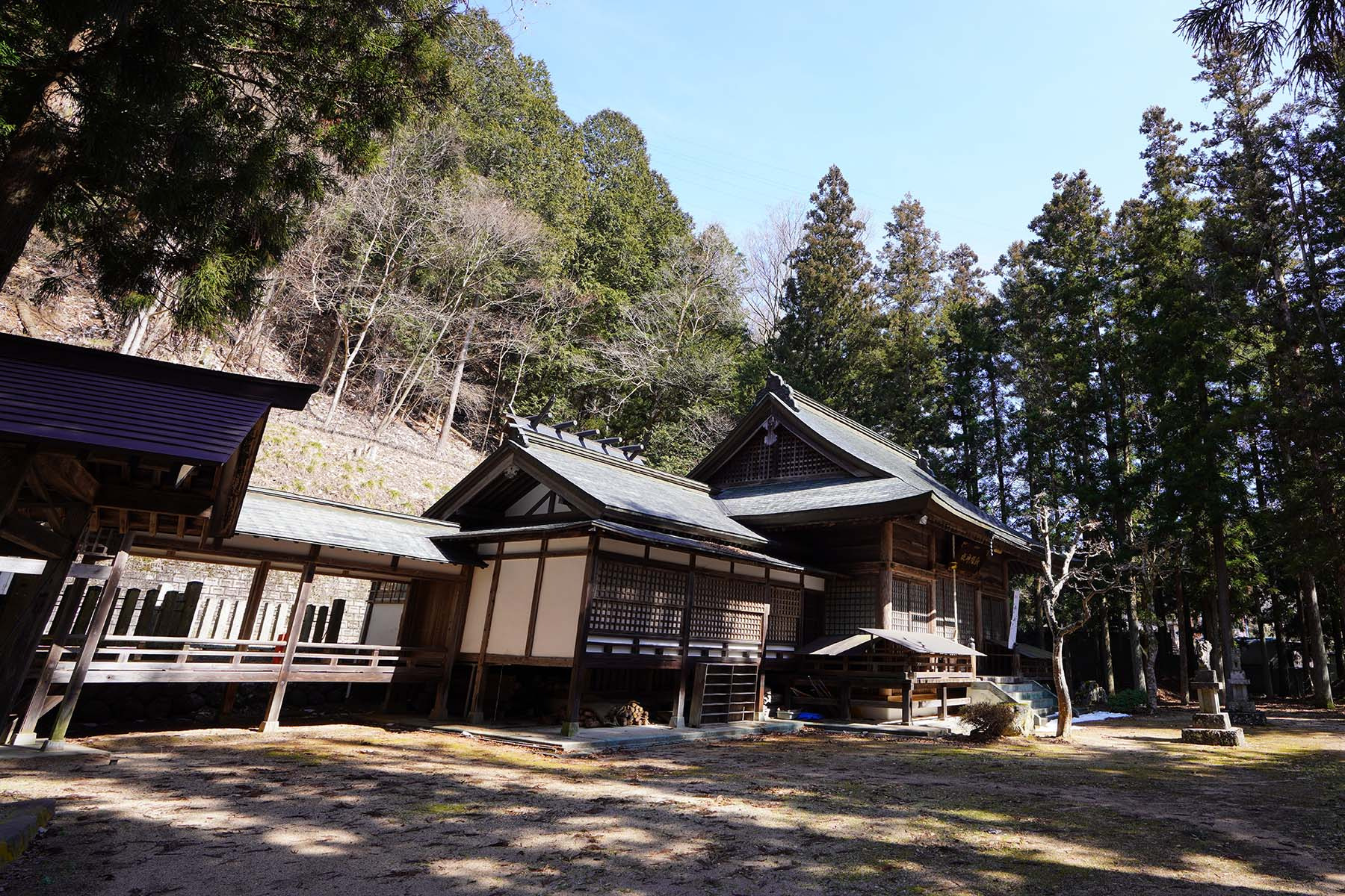 | 例祭の見どころ | 午前 鉦打ち(小・中学生)、獅子舞(若社連)の村回り 午後 公民館から神社まで行列 当神社にて例祭を斎行(14:00) 浦安の舞、神楽獅子、鉦打ちを奉納 |