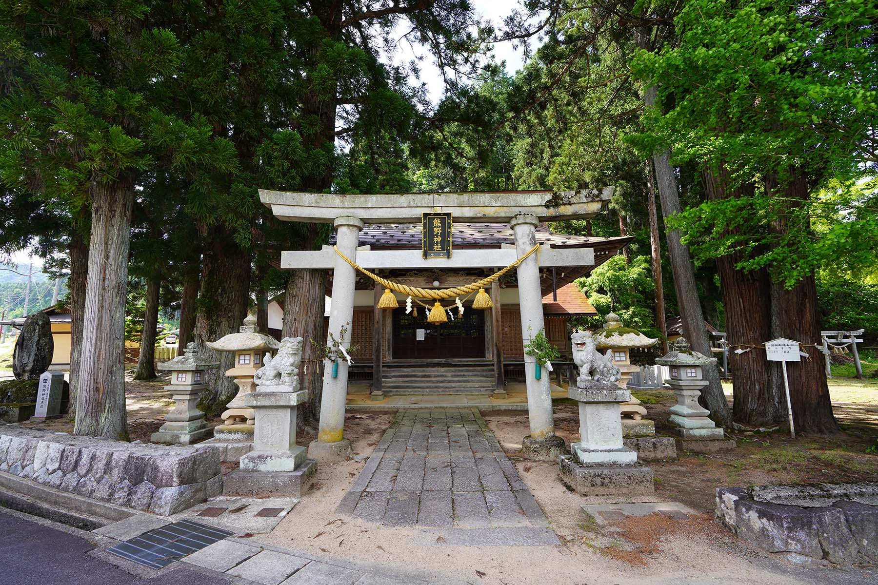 | 例祭の見どころ | 13:30 社務所(公民館)より祭行列が出発 14:00 熊野神社にて例大祭を斎行。獅子舞、鉦打ちの披露 |