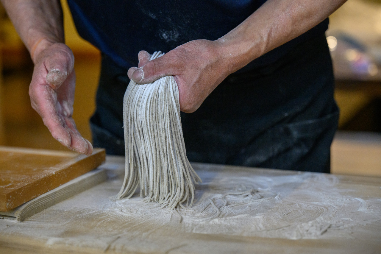 『火畑蕎麦』とは、標高1,000メートルを超える高地で、春に野焼きを行いミネラル豊富な蕎麦へと成長します。また、収穫前に霜にうたせることで小粒ながらも香りが高く、風味豊かな蕎麦となります。当日は、収穫したばかりの新蕎麦『火畑蕎麦』を、温かいかけそばで販売します。