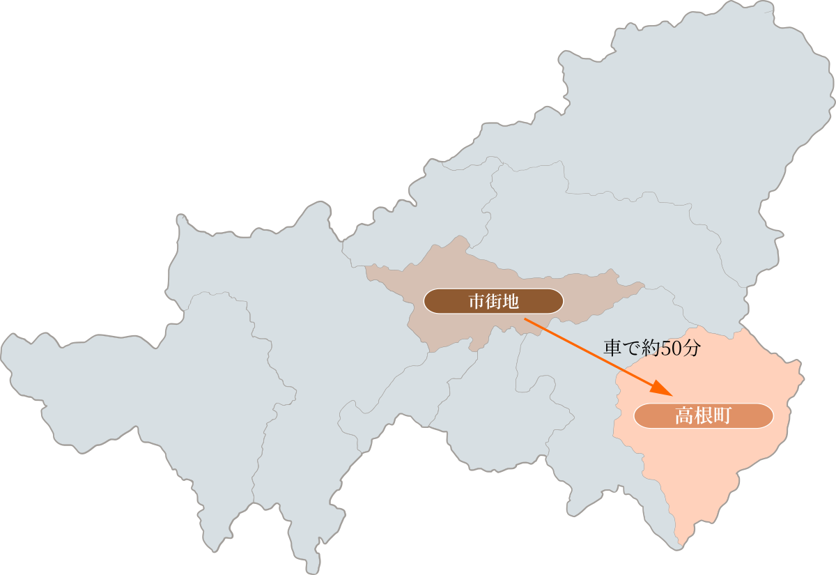 高山市街地より車を走らせ約1時間、高根町に到着します。町を貫く国道361号線は信州へと続き、古くから人と物が行き交う地でした。標高も高く、冬の寒さもひとしお厳しい地です。そのため春の訪れが一足遅く、周辺ではとうに散った5月上旬ころに満開の桜を楽しむことができます。