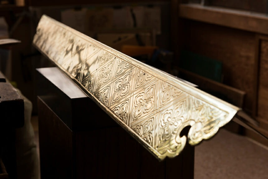 「優れた錺をじかに修復することで勉強になる。昔の意匠に触れ当時の職人はどんな想いで手がけたんやろうと、タイムスリップするように想像をめぐらせますよ」。