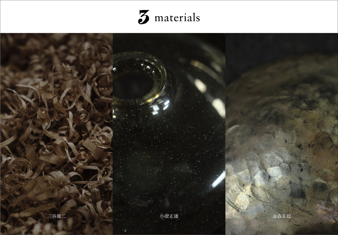 企画展「3 materials 鉄 硝⼦ ⽊ ── 共にあることのかたち」