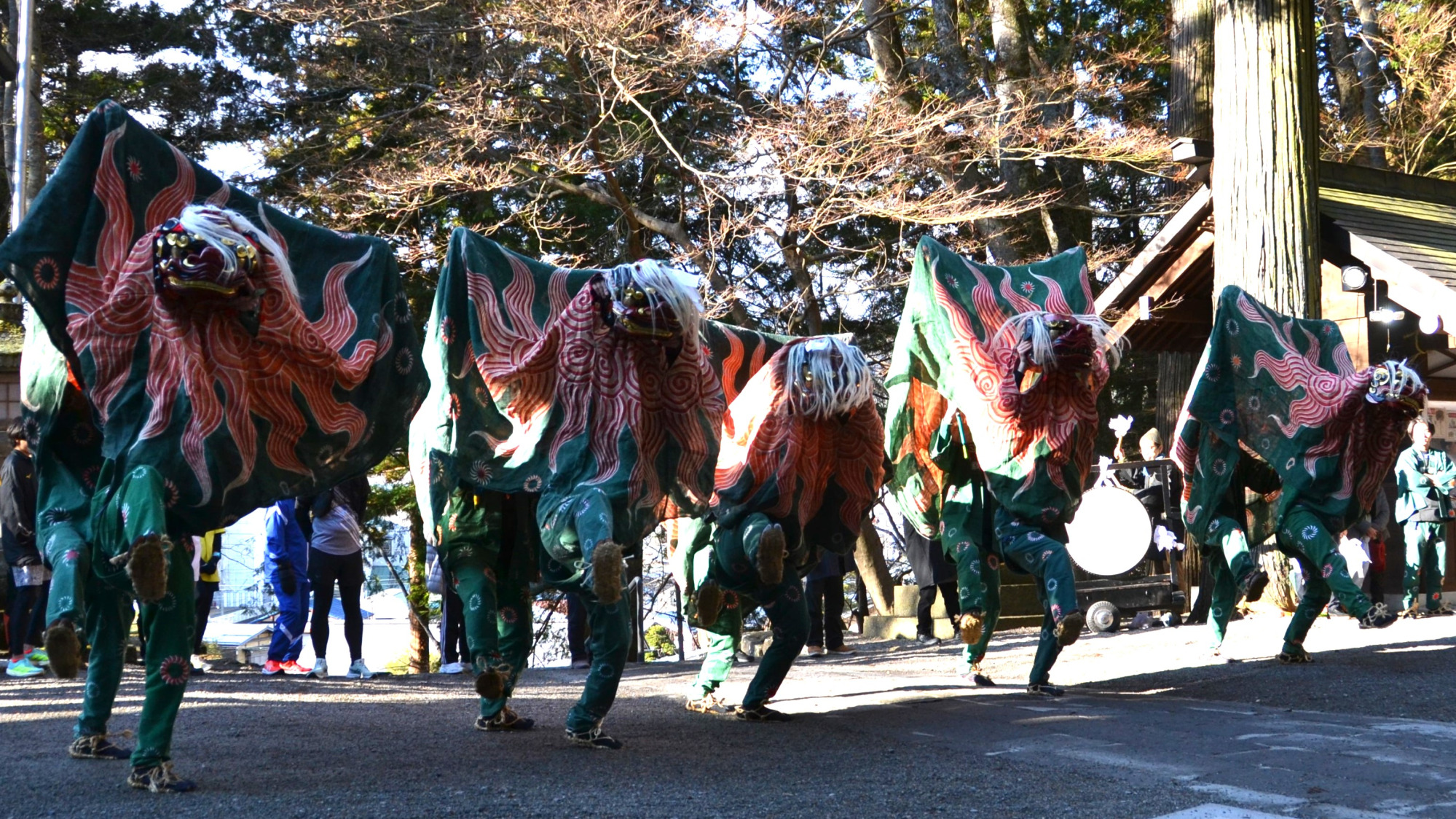 毎年元旦の朝9時から獅子舞の奉納が行われます。また、参拝者へ甘酒やこぶ茶の振る舞いがあります。
