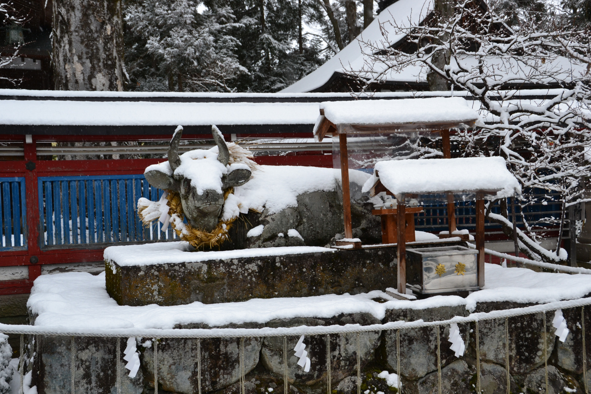 学問の神として有名な菅原道真を祀る神社「飛騨天満宮」。飛騨権掾菅原兼茂が父親の菅原道真が大宰府で亡くなったことを聞き、祠を建て自らの手で彫った木像を祀ったのが始まりとされています。一族の無実が認められ兼重公が本官に復帰の折り、飛騨の里人にいつまでも祭祀を継続するよう懇請された923年を創建とし、2023年には創建1100年を迎え奉祝祭が盛大に執り行われました。祭神は学問の神様 菅原道真公、お遣いである牛を撫でて願掛けをすれば願いが叶うといわれている「願掛け撫で牛」の石像があり、日頃より受験生や学生の方が多く訪れています。