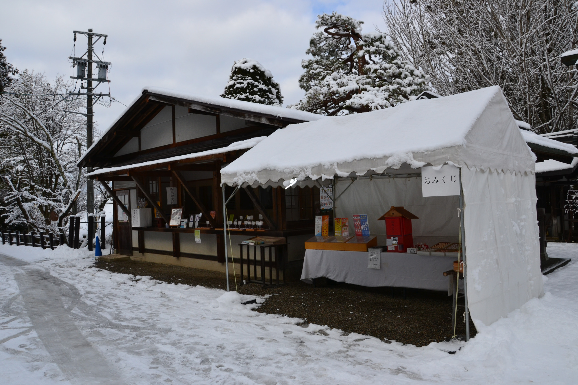 飛騨の国の「一宮」として飛騨人の心のよりどころとなっている「飛騨一宮水無神社」。三が日は家族連れの参拝客、特に自家用車のご祈祷を願う人々で近辺の道路が渋滞するほど賑わいます。境内しも手には食べ物や飲み物の屋台が出て、縁日さながら。お参りをする市民の楽しみともなっています。