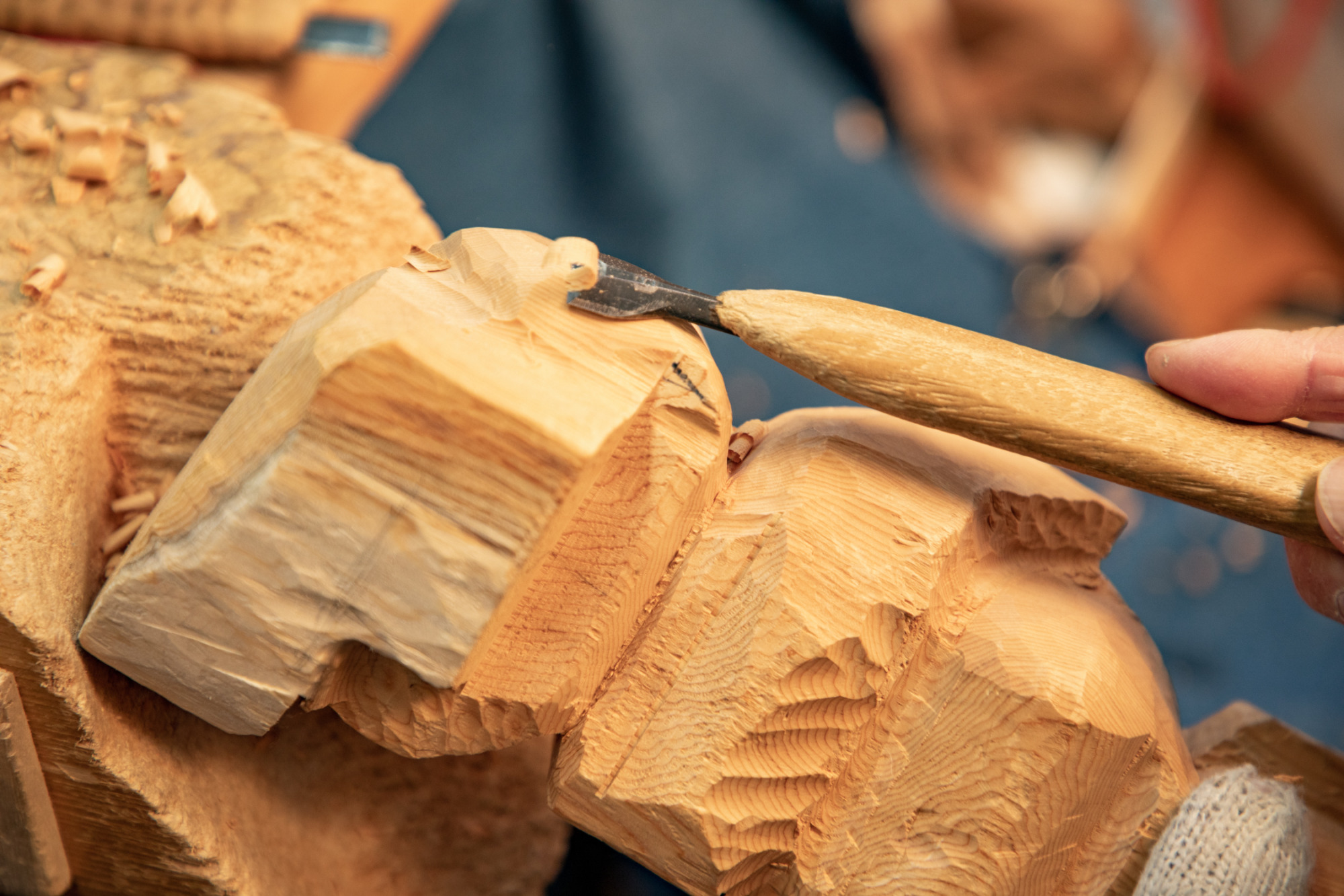 一位一刀彫は、江戸時代末期、高山の松田亮⾧が飛騨の象徴であるイチイ材を用い、採色を施さない独自の技法で根付彫刻をつくったことが始まりとされます。良材選びに始まり、木取り等6つの工程を経て仕上げた作品は、年月とともに木肌や木目の色艶が増すことが魅力となっています。高山市「古い町並」にある「まちの博物館」では一位一刀彫りを始めとした飛騨高山の工芸品を鑑賞することができます。
