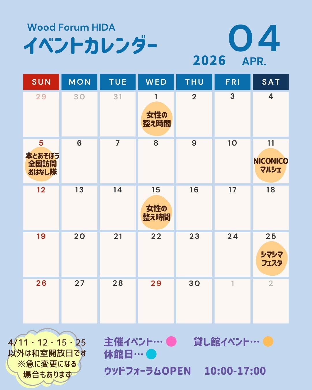 「和室の貸館利用のある日」はお休みになります