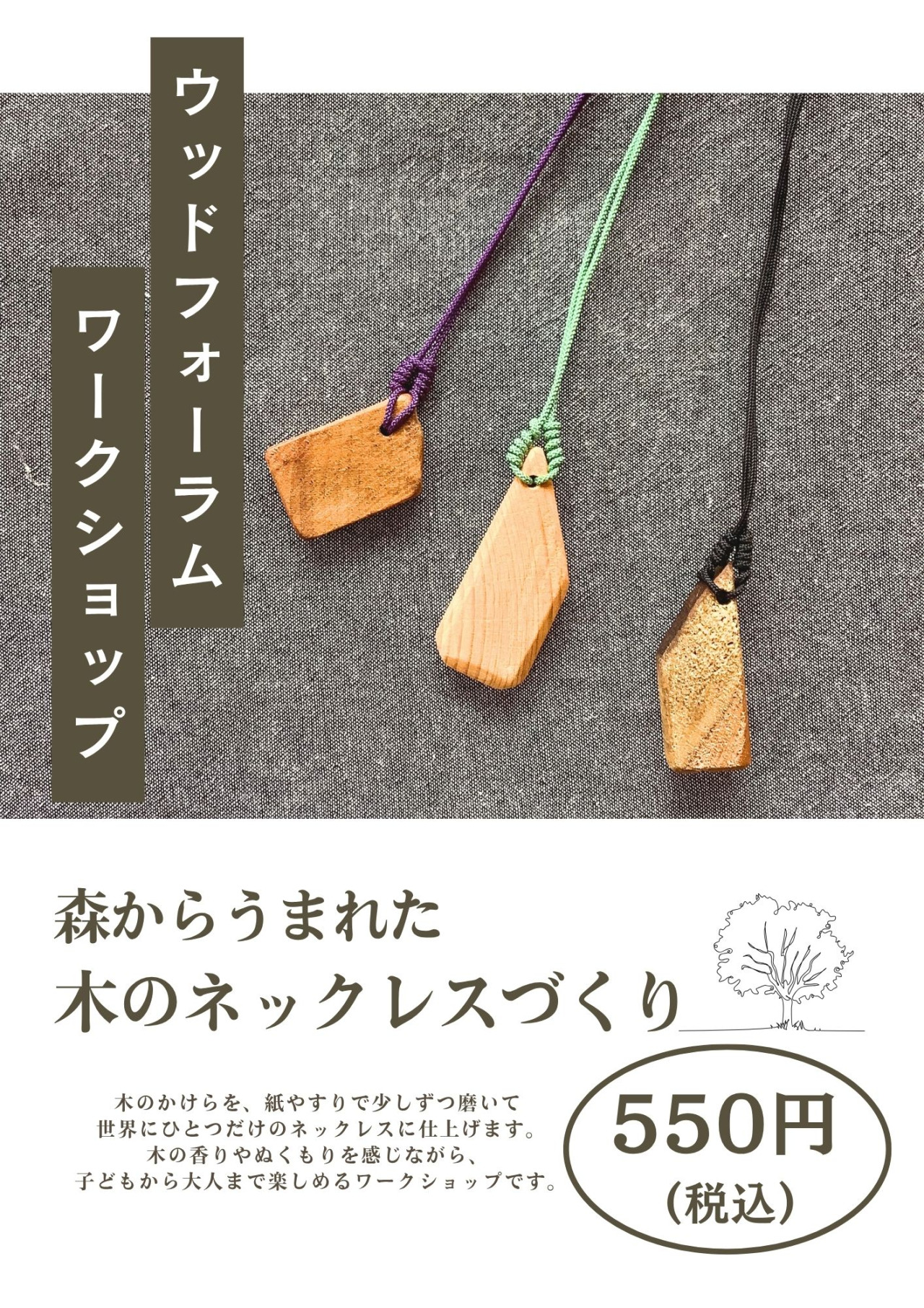 森からうまれた 木のネックレスづくり 550円(税込)