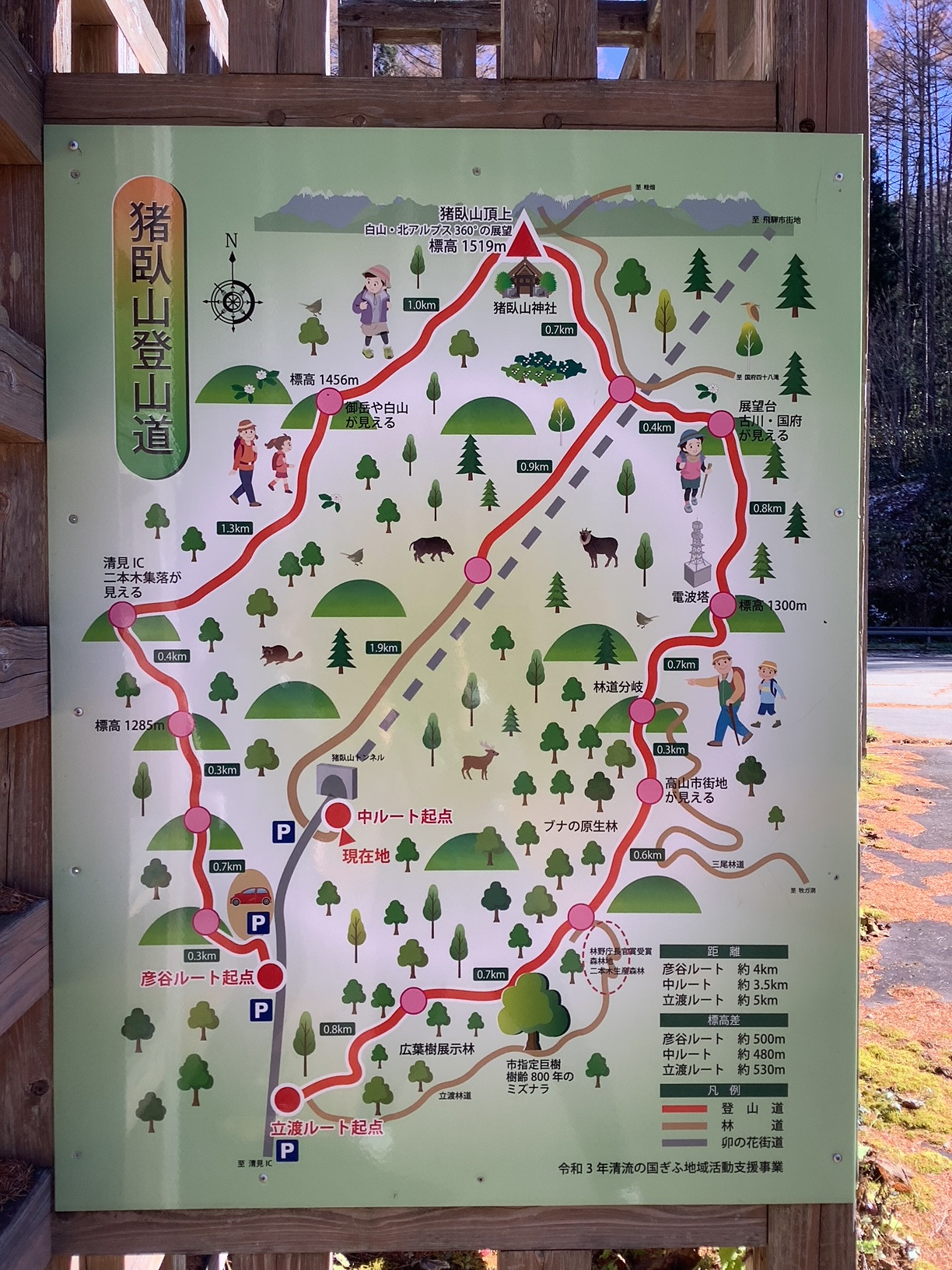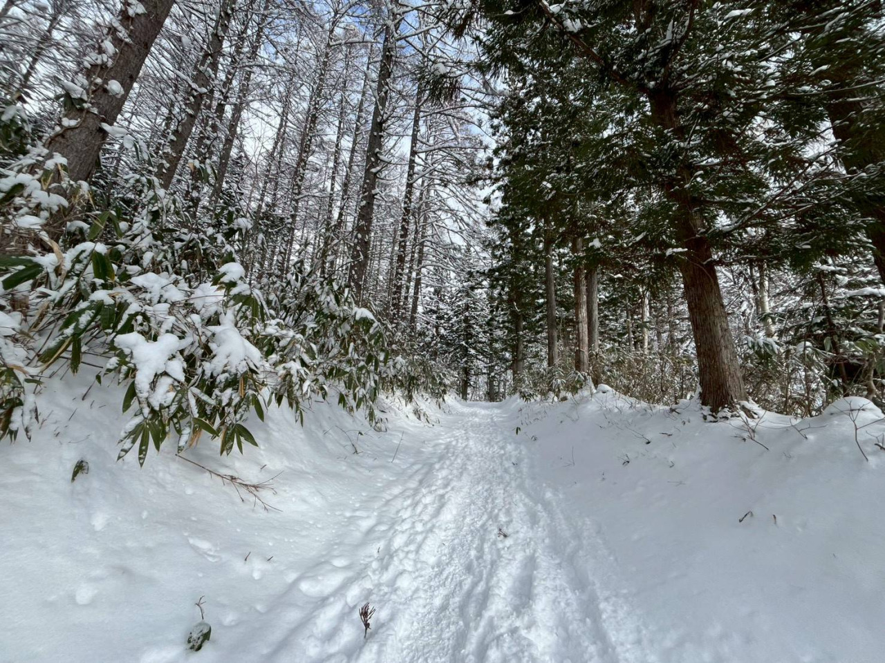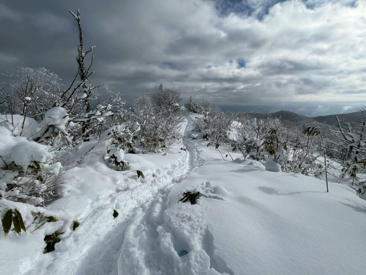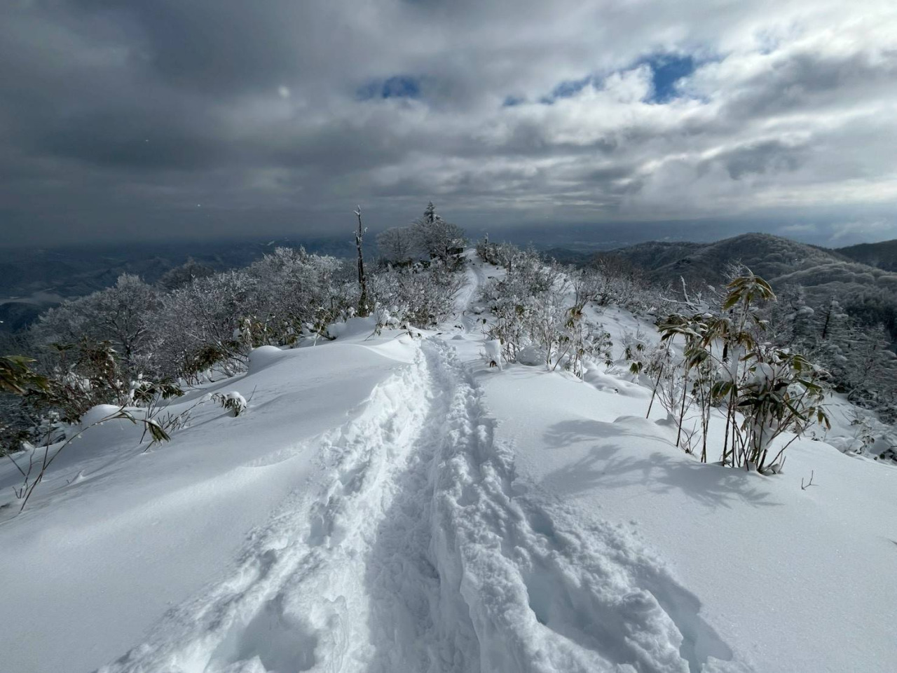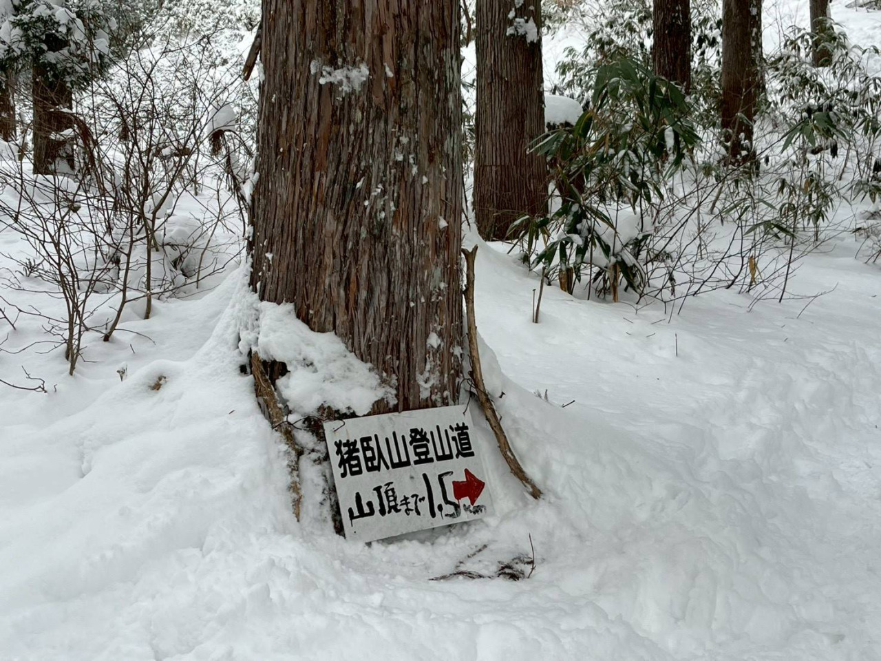 約3.5kmの「中ルート」は、卯の花街道沿い猪臥山トンネル手前の駐車場がスタート地点。雪景色を楽しみながらの冬季登山も人気です。
