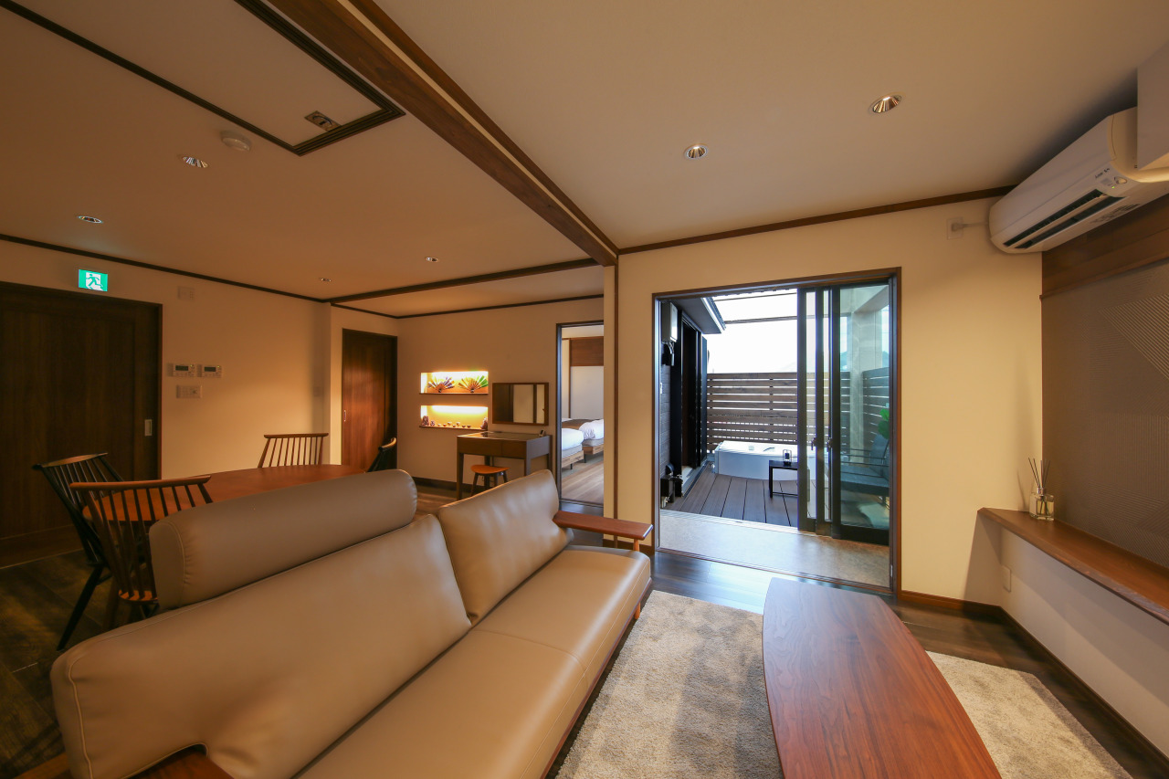ジャグジー露天風呂付、1フロア貸切の広々空間でゆったりと